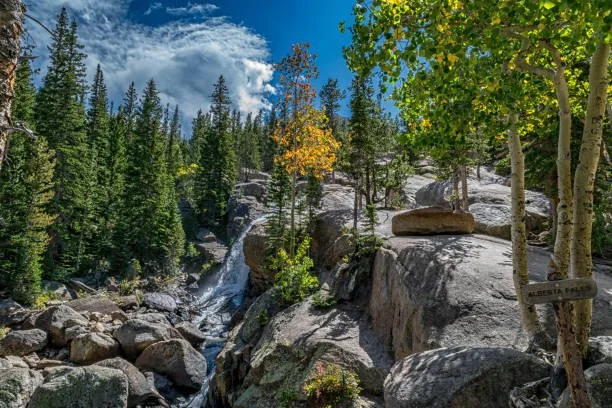 Location: Glacier Gorge parking lot on Bear Lake Road. To get a parking space here, plan on arriving no later than 6:30 am, but even earlier is better. If the parking lot is full, park in the large parking lot at the end of Bear Lake Road. From the Bear Lake Trailhead, follow signs to Alberta Falls. Parking in the lot at the end of Bear Lake Road adds roughly .4 miles to the hiking distance above.